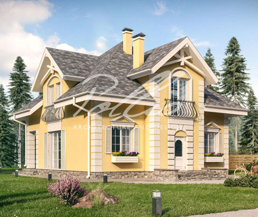 Namo projektas su mansarda 268 m² su 2 miegamaisiais, 2 voniomis ir namų kino sale